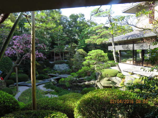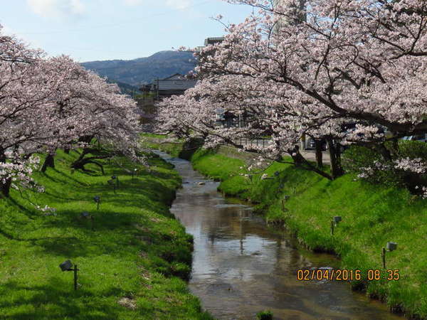 島根縣的玉造溫泉擁有1300年的歷史,八世紀左右就已經被譽為神湯,沿著玉湯川兩旁,皆是一家家擁有露天風呂、具歷史的溫泉旅館,自古以來就享譽盛名。佳翠苑皆美旅館乃西日本頂級百選旅館,尤其特別值得一提的是飯店本身的庭園即獲得美國『日本庭園專門誌(JOJG)』評鑑為全日本第10名的名庭園殊榮,實屬難得,(PS:足立美術館獲得評鑑為「日本第一的庭園」),而以庭園為中心,四周設置有足湯、散落玫瑰花瓣的手湯、木肌之湯、玉肌之湯等露天溫泉,經過美學設計精心打造盡心營造一個擁有休閒與享受的典雅絕佳氣氛,深受松本清張、棟方志功等眾多文人墨客、畫家所喜愛而曾下榻。適逢櫻花季,河川兩旁櫻花怒放似海。原本以為山陰小地方,至此乃大表意外。