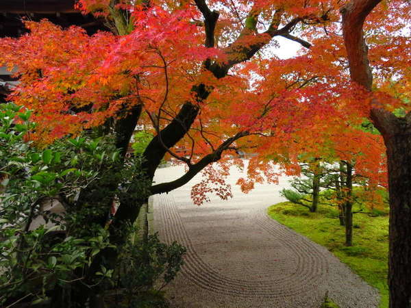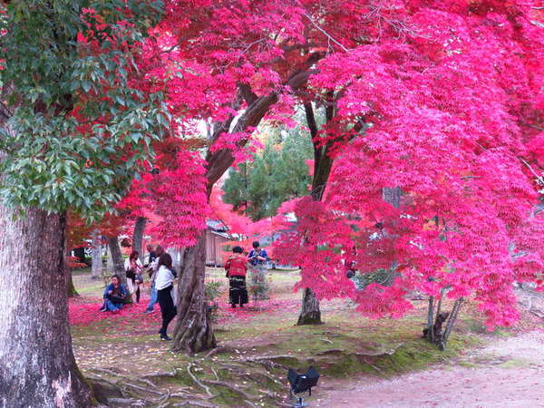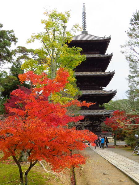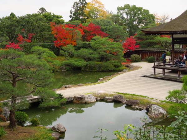 世界文化遺產「仁和寺」也稱為「御室御所」。境内保留了國寶級建築。尤其位於「御殿」裡的「庭園」更是仁和寺的重點之一。分為「北園」和「南園」,在楓紅的襯托下庭園風情更引人入勝,久久不能忘懷。
