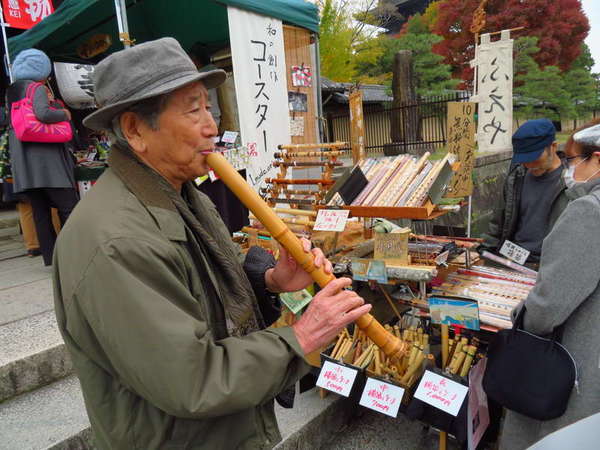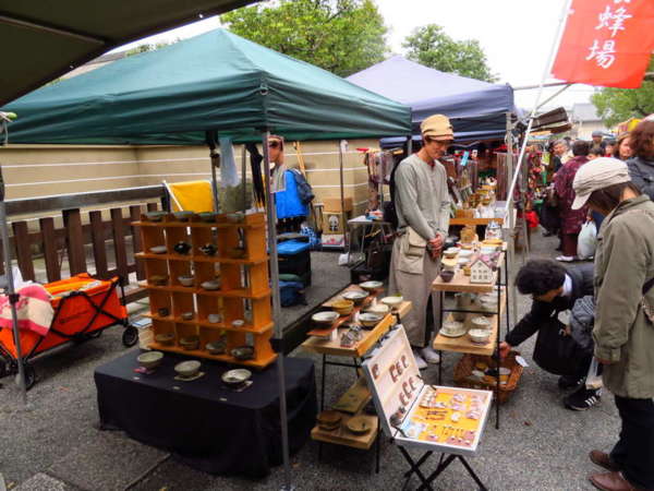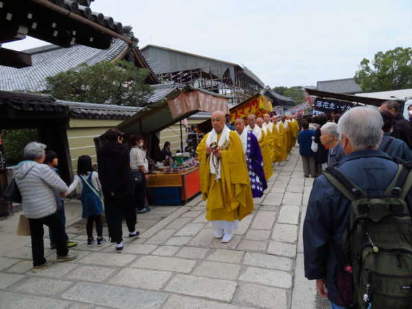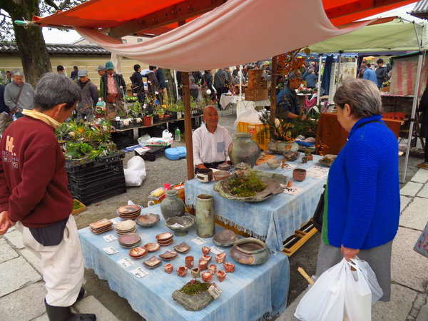 指南說東寺有很多被指定為文化財產的佛像,具有纖細造型和震撼力的藝術寶物,包括曼陀羅21尊佛像,高度6米的千手觀音菩薩像是必看的(我現在不想看重量級文物),可我被21日被稱為弘法市的廟會所吸引,院內有很多販賣古董和京都名產的攤販,非常熱鬧,我愛逛庶民市集。