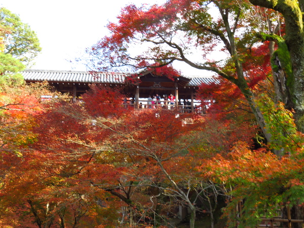 怎麼拍怎麼美!通天橋是東福寺境內最受歡迎的賞楓地點。深色的樹木與色彩斑斕的紅葉形成強烈對比!就像是一幅幅的圖畫交織成最絢爛的美景。
