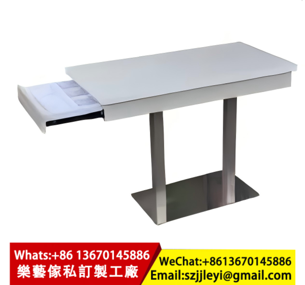 我們專業生產各類 餐廳抽屜儲物餐桌、茶餐廳餐枱、咖啡廳桌椅、西餐廳餐檯、包間圓桌等,