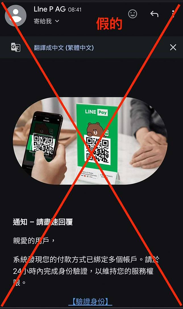 LINE詐騙新招!假冒LINE Pay通知「重複扣款」 存款恐被掏空詐騙又有新招!詐騙手段層出不窮,近期發現有詐騙集團,假冒通訊軟體LINE付款方式「LINE Pay」的名義,通知用戶交易重複付款或付款方式綁定多個帳戶,試圖獲取用戶的個人資訊。對此,LINE官方公告4大注意事項,以及若誤點可疑連結的應對方法。 近期有民眾收到有不法分子假冒LINE Pay名義,以電子郵件的方式通知用戶LINE Pay交易重複付款或付款方式綁定多個帳戶,試圖誘騙用戶透過不明連結,藉以獲取民眾的個人資訊。 根據詐騙郵件中可以看到,對方會通知「您最近的一筆付款已被重複扣款」、「您的付款方式已綁定多個帳戶」等,並要求在24小時內完成驗證以免遭停用。信件中還附有「驗證身分」、「立即申請退款」的按鍵,若點擊將會進入假冒LINE Pay驗證的頁面,會一步步引導你提供手機號碼、密碼、信用卡號、卡片安全碼等,讓民眾個資和存款瞬間被獲取。 有鑒於網路詐騙案件頻傳,LINE官方也公告提醒,應注意以下事項,以維護用戶的權益及LINE、LINE Pay、iPASS MONEY帳戶安全: 1. 請勿點擊不明來歷的程式、訊息、Email、簡訊,或您不認識的人提供的連結。 2. 使用LINE及LINE Pay前,請確認您是直接於App Store或Google Play下載。 3. 若收到以LINE Pay名義發出的Email且含有連結網址,請先確認您有是否該封Email內容中所述的操作,並檢查寄件者的Email網域是否為@linecorp.com或@lycorp.com,如有疑問請與LINE Pay客服中心聯繫。 4. 如您已誤點可疑連結,建議您儘速更換LINE、LINE Pay、iPASS MONEY帳戶及其他金融商品(例如:網路銀行)的密碼,並以掃毒軟體掃描手機。 LINE也公告LINE Pay通知使用者、合作商店重要事項的管道,包含「LINE錢包」、「LINE Pay提醒」、「LINE Pay Merchant」官方帳號,帳號名稱前須留意為綠色盾牌,且「LINE」為全部大寫英文字母,傳送LINE訊息到上述帳號都不會有真人回覆;且網域為@linecorp.com或@lycorp.com的電子郵件信箱。 至於LINE Pay公告使用者、合作店家行銷活動的管道,包含「LINE Pay」、「LINE Pay獎勵計劃」、「LINE Pay商店情報站」官方帳號,名稱前為綠色盾牌,且「LINE」為全部大寫英文字母,同樣傳送LINE訊息到上述帳號都不會有真人回覆;以及LINE Pay主頁的「活動訊息」、LINE Pay臉書粉絲專頁。 延伸閱讀生活話題:居家除濕妙招 |