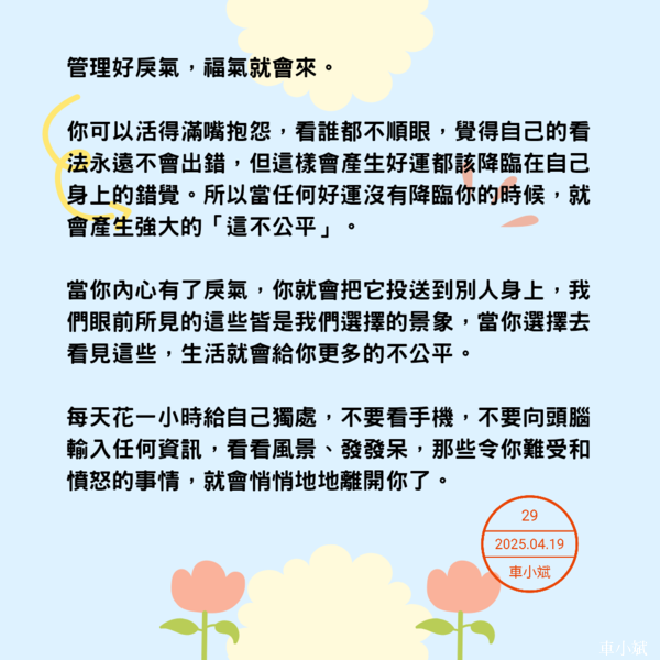 管理好戾氣,福氣就會來。