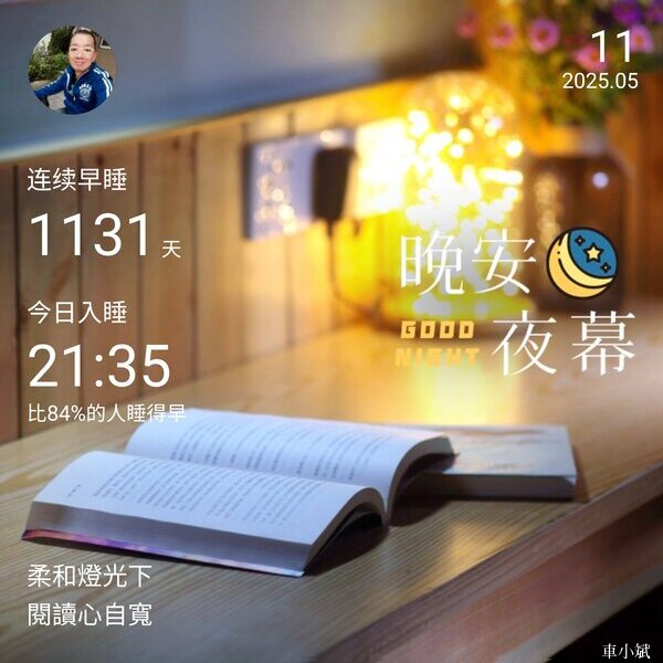 晚安圖 2025.05.11 柔和燈光下,閱讀心自寬。
