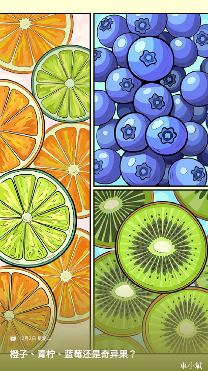 APP名稱: 數字填色 Paint by Number (by Oakever Games) 繪圖日期:2025.12.02 橙子、青檸、藍莓還是奇異果? |