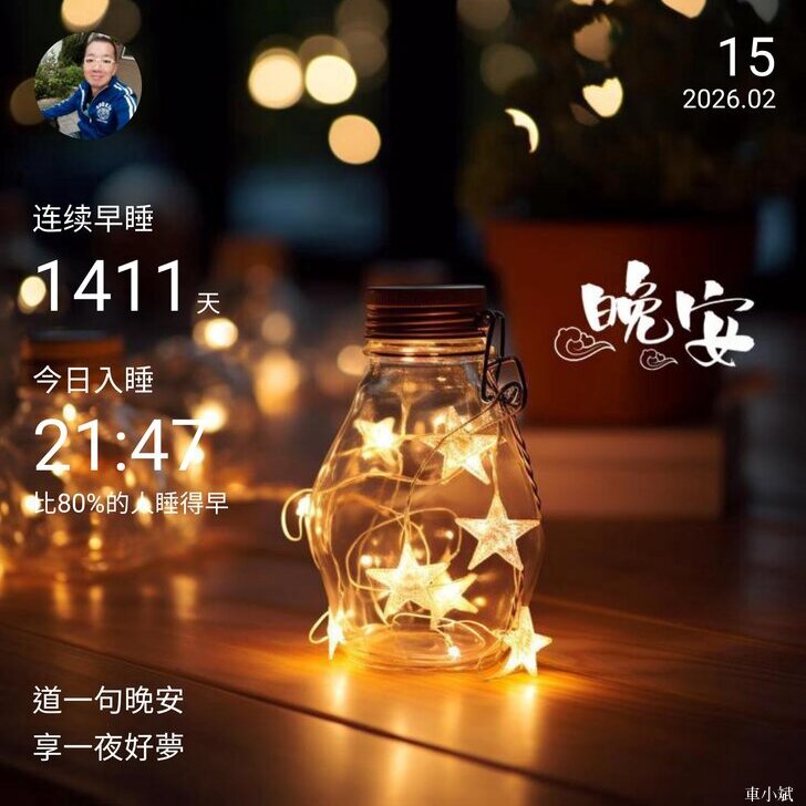 ⬆️晚安打卡圖,2026.02.15,道一句晚安,享一夜好夢