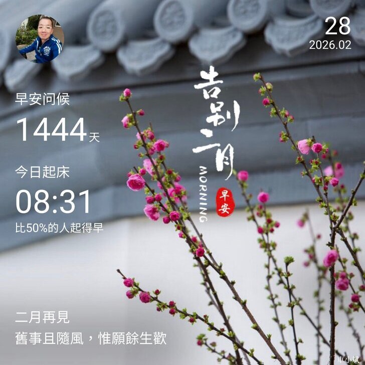 ⬆️早安打卡圖,2026.02.28,二月再見,舊事且隨風,惟願餘生歡