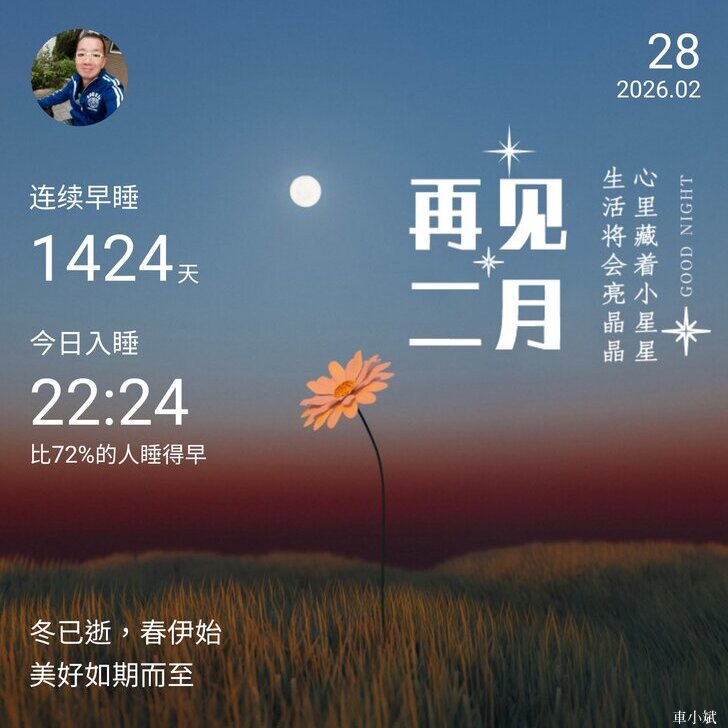 ⬆️晚安打卡圖,2026.02.28,冬已逝,春伊始,美好如期而至