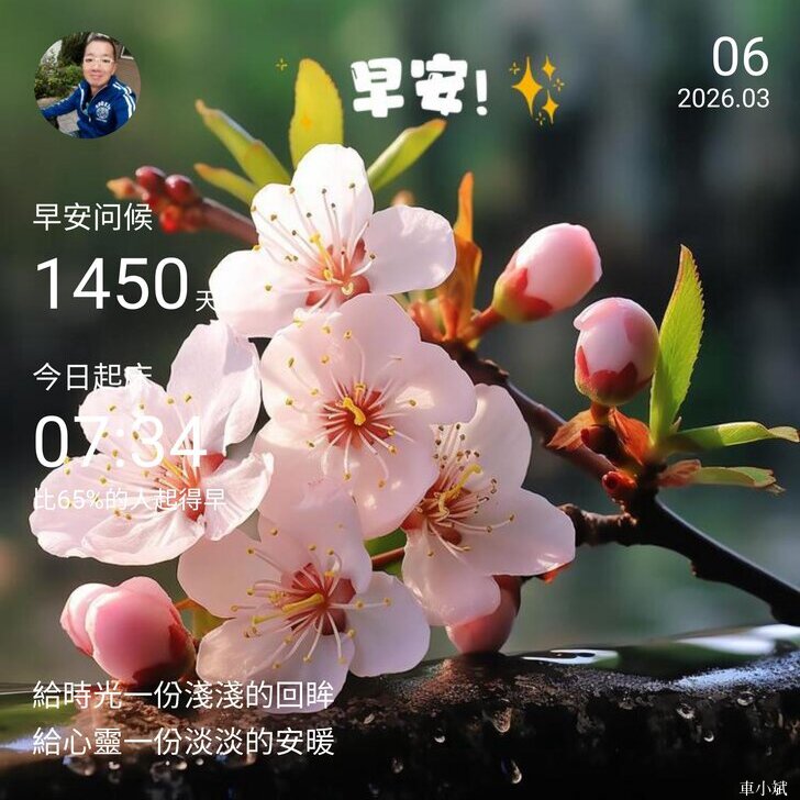 ⬆️早安打卡圖,2026.03.06,給時光一份淺淺的回眸,給心靈一份淡淡的安暖