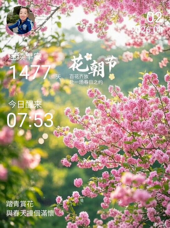 ⬆️早安打卡圖,2026.04.02,踏青賞花,與春天撞個滿懷 花朝節是中國傳統的「百花生日」,又稱花神節,主要在農曆二月舉行,用來祭祀花神、慶祝春天百花盛開。它象徵春意盎然與生命繁盛,曾是重要的民間節日。 🌸 花朝節: