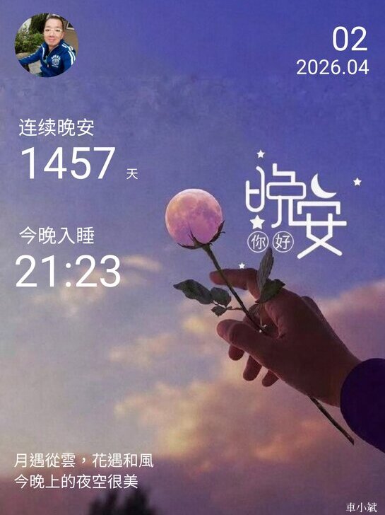 ⬆️日安打卡圖,2026.04.02,晚安,願你平安,願你健康,願你快樂 |