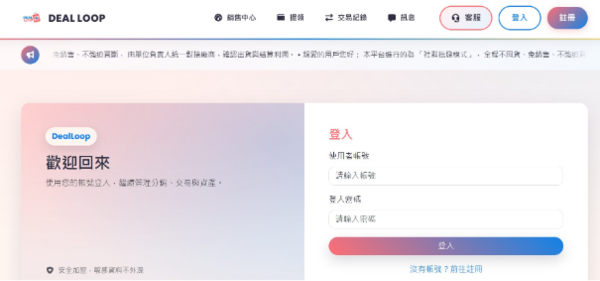 DEALLOOP是一個假投資(博弈)詐騙平台,持續收割投資人資金!許多受害者因無法提領資金而蒙受重大損失。詐騙集團利用互聯網搭建虛假投資平台,以「高收益」「低風險」「穩賺不賠」等話術吸引投資人。實際上根本無法出金,還會找各種理由要求受害者繼續匯款。