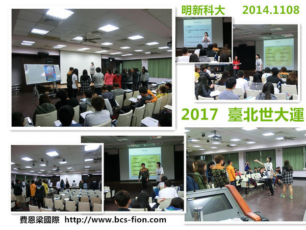 課程講授 : 梁芊雯 【第 3 場次】 課程日期 : 2014/11/08 (六) 15:00至17:00 課程地點 : 明新科技大學 課程人數 : 55 人