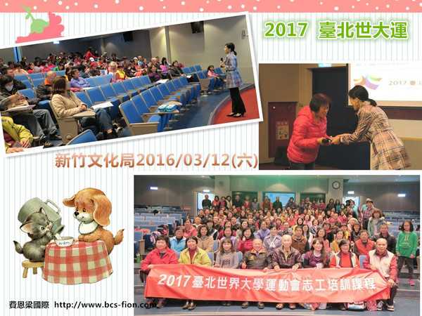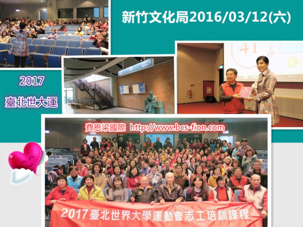 課程講授 : 梁芊雯 【第 20 場次‧社會志工】 課程日期 : 2016/03/12(六) 10:00至12:00 課程地點 : 新竹文化局 課程人數 : 120 人