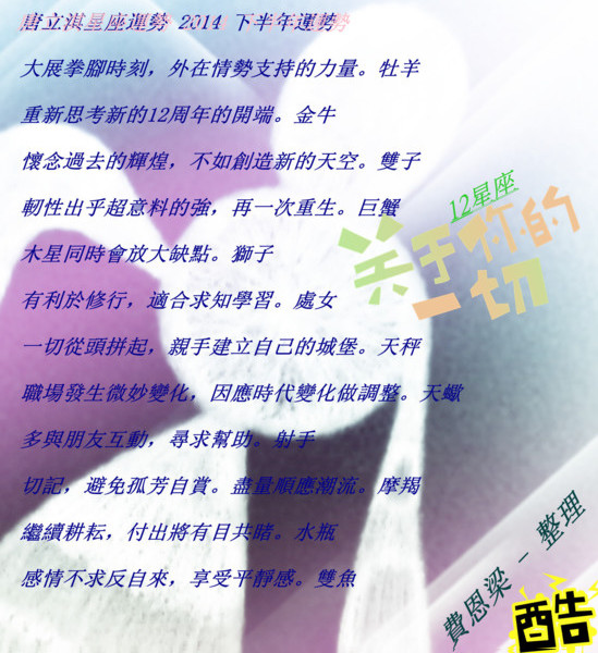 2014下半年運勢-12星座