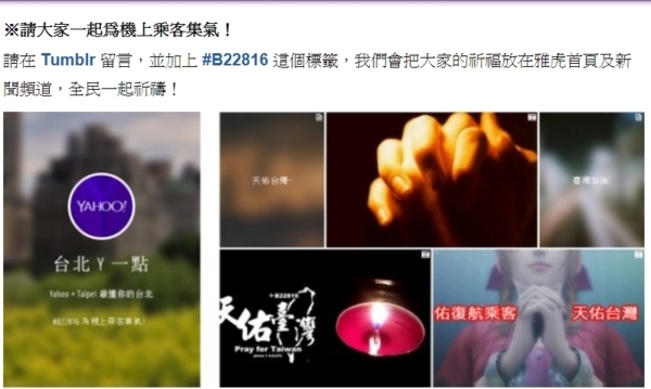 機身編號B22816的復興航空班機,搭載了58人,今天上午失事墜落基隆河,死傷慘重,搜救行動持續進行中。許多網友湧上 Tumblr 留言集氣,為失蹤者和生還者祈福,希望罹難者安息,並且向辛勞的救難人員致謝。