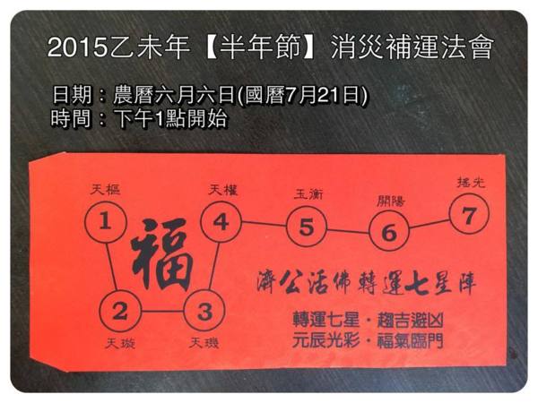 一年一度的半年節法會,在下星期二如期舉行,敬請參與法會的信眾要記得將去年法會的七星陣紅包,帶回來汰舊換新!
