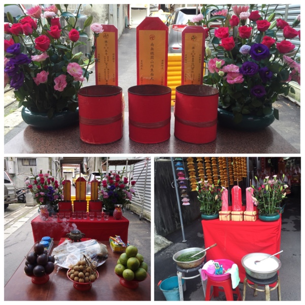 設立【焦面大士】蓮座(乃觀音大士化身,或稱普渡公)、【無祀孤魂】、【歷代祖先及累世冤親債主】等牌位。