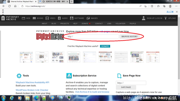 為了避免部落格搬家不久後就被告非法重製和侵權,部落格搬家前要先確定有人曾經過看舊的/原先的部落格,方法不難,就連上「網路時光機(WayBack Machine)」的網站(網址https://archive.org/web/),把文章的網址貼到「BROWSE HISTORY」前的欄位裡,看看「網路時光機」是否過去曾看過你的部落格文章。 如果沒有也不要傷心,就自己給文章的網址邀請「網路時光機」來看看自己的寫作內容。 方法如下: 步驟1:連到「https://archive.org/web/」