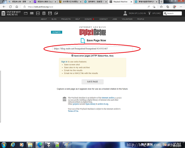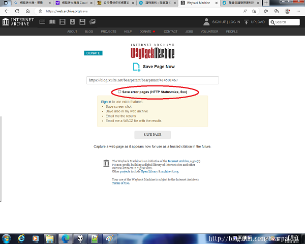 步驟2:點選「SAVE PAGE」或「SAVE PAGE NOW」