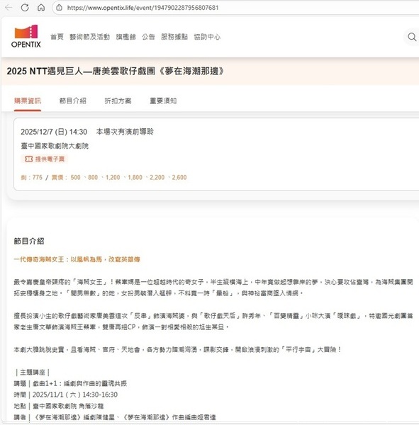 圖1:opentix刊出的介紹