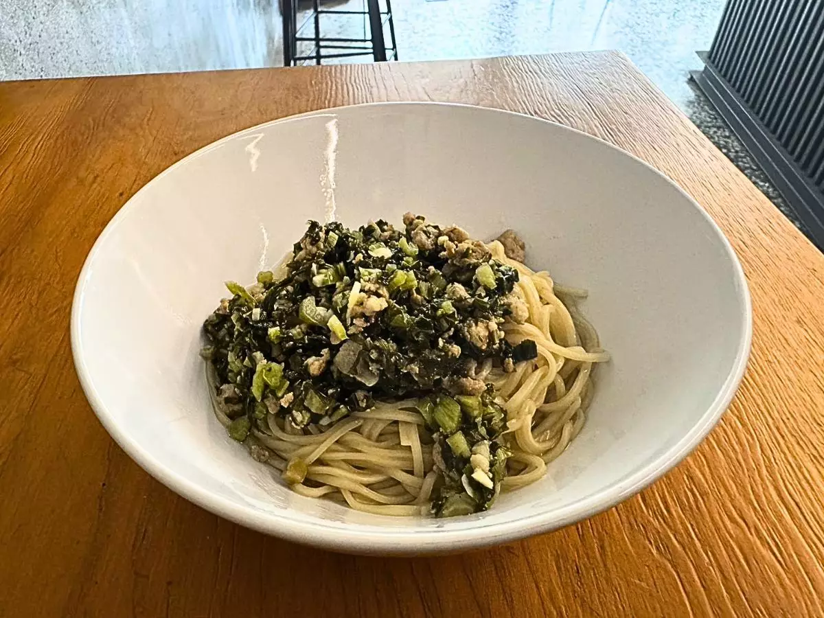 國美館周邊美食推薦:正統義大利式濃咖啡與人氣麵點全天候供應 在飲食規劃上,【亨利貞】不只專注於正統義大利式咖啡及精品咖啡,也將日常麵食納入咖啡館的核心體驗。咖啡以 Caffe Espresso 為基礎,展現義大利咖啡、直接的風味本質,同時也提供精品咖啡選擇,讓習慣細品風味層次的客人能品嚐創辦人每日推薦的精選豆種($ 150)。餐食方面,主打雪菜拌麵($ 100)與紅油燃麵($ 90),前者口感清爽、後者香麻帶勁,皆是適合反覆品嚐、不易吃膩的經典麵食,讓咖啡館成為能同時滿足正餐與午後休閒的日常空間。