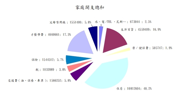 你算過你家的四輪車花你多少錢呢?它可是你的另一個小孩,還是小三! 我家的國產車開了20年,除了買車錢,平均每公里的變動成本將近5NTD$, 總共花的可以換一輛Lexus 或 ○○○○進口轎車, 相當於養一個小孩絕不為過! 所以奉勸剛出社會的年輕人,想要五子登科必須精打細算,千萬別衝動去買房或買車,不然就像春天的蝴蝶過不了寒冬,被錢追著跑,慘兮兮!!