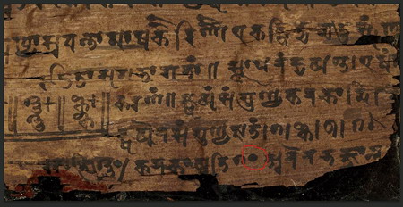 在這張特寫照片中,可看見最末一行有個做為占位符號的小圓點(照片/美國國家地理會社提供) 零是極為重要的數學概念,而這個概念是何時出現的呢? 一八八一年,在今日巴基斯坦巴克沙利地區(當時屬於印度),有個農夫發現一份以樺樹皮寫成的古印度殘簡。這份後來稱為「巴克沙利手稿」(Bakhshali Manuscript)的文獻,包含了豐富的數學教材,而且在梵文數字中以實心小黑點來代表零。 早期研究推定手稿的年代落於八至十二世紀之間,但最近牛津大學研究人員利用放射性碳定年法,發現殘簡上的物質至少出自三個時期,有幾張手稿甚至可追溯到第三或第四世紀。因此,在現今出土的古代文物中,巴克沙利手稿是最早使用數字零的文獻。 不過,手稿中的實心小黑點,嚴格而言屬於空位符號,好比「901」中的0,僅表示十位數無數字,並非一個獨立數字(如數字一至九)。換言之,雖然代表零的符號問世了,但它無法獨立存在。在中西文化中,「零/0」的概念牽扯到哲學,甚至宗教,因此比數字一、二、三等自然數更晚成為獨立數字。 哈佛大學數學教授卡普蘭說,早在五千年前,美索不達米亞的蘇美人就提出空位符號零的概念。這個概念後來傳入印度,最後也傳到中國。 那麼,零何時成為數字序列中的正式成員呢?牛津大學數學家杜‧索托伊說,根據現有文獻,率先將零視為獨立數字的,應該是印度數學家與天文學家婆羅摩笈多,他的《婆羅摩曆算書》(西元六二八年完成)討論到零的運算,包括以零做為除數的難題。 歷史學家猜測,阿拉伯商旅沿著歐亞古老貿易路線絲路,同時將零從北印度傳播出去,促使各家數學學派崛起發展。 荷蘭的「零源印度計畫」(ZerOrigIndia,以尋找零之起源為宗旨)核心成員高貝茲強調,要斷定某文獻中的零具有獨立數字身分,這個零必須出現在數學等式中。他同意《婆羅摩曆算書》是迄今發現最早將零視為獨立數字的文本,但零從何處來?又如何從虛無的概念變成獨立數字?高貝茲認為,既然缺乏明確的文獻記載,這些問題仍舊充滿了爭議。 http://paper.udn.com/udnpaper/POE0022/324041/web/index.html#4L-11801551L