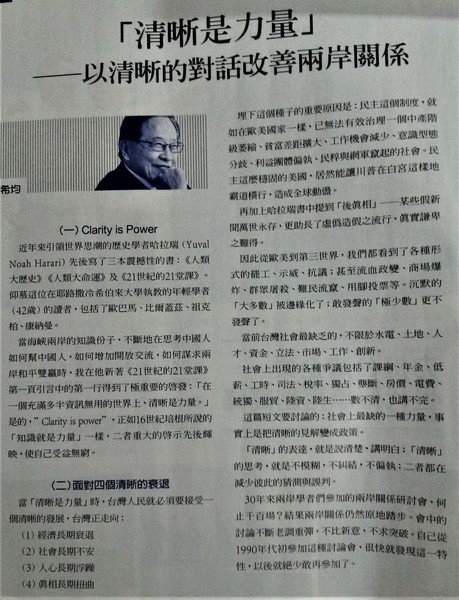 「清晰是力量」──以清晰的對話改善兩岸關係