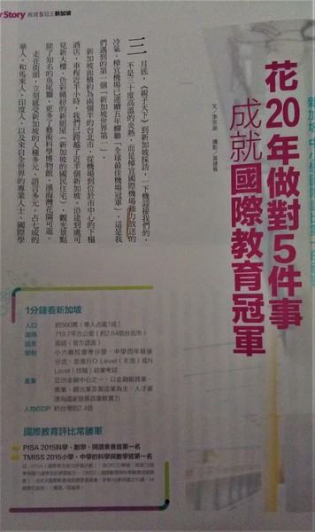 教更少,學更好--教育5冠王新加坡(親子天下2017-5月號) 新加坡教育成功,有5個關鍵:
