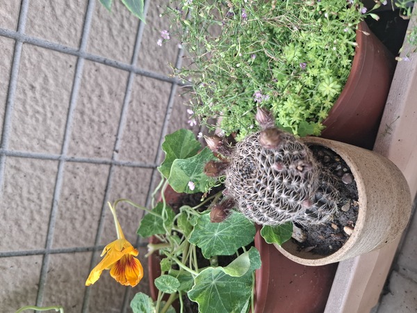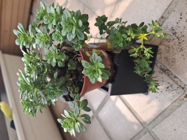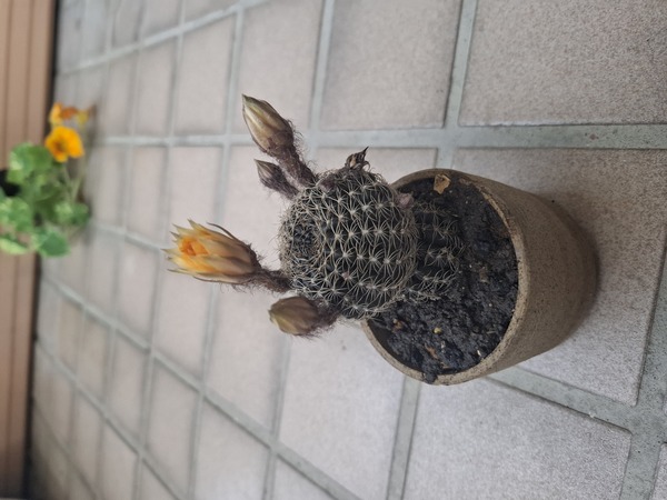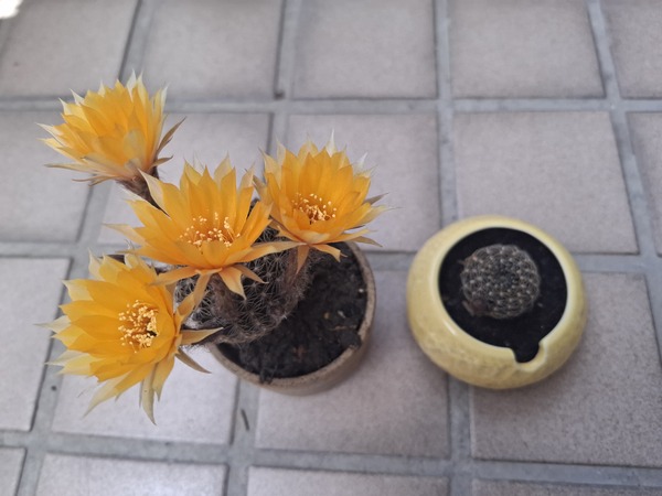 母株與黃色花盆中的寶寶,連寶寶今年也冒出花苞