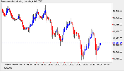 [目前K棒的平均價格] xOpen = [xOpen(Previous Bar) + Close(Previous Bar)]/2 [前一根平均K線開盤價與前一根一般K線收盤價的平均值] xHigh = Max(High, xOpen, xClose) [今日最高價、今日平均K線開盤價與今日平均K線收盤價三者中間的最高價] xLow = Min(Low, xOpen, xClose) [今日最低價、今日平均K線開盤價與今日平均K線收盤價三者中間的最低價] 道瓊指數 2009.12.01 平均K線圖(週線) source:Netdania |