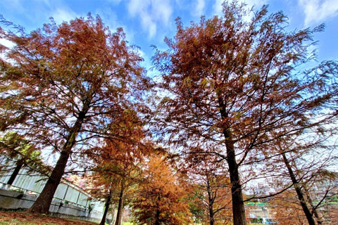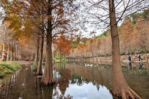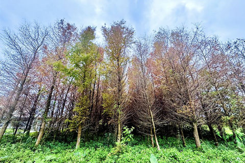 環鄉自行車道旁獲網紅關注美景!漸層轉色繽紛落羽松森林
