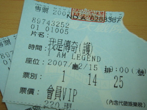 睽違已久的周末總算再度來臨,耀眼的冬陽伴隨著冷冷的早晨,我看著身邊睡的正甜的草莓,伸伸懶腰把電腦主機搬到客廳等待貴人前來相救,誰知要救我電腦的人因為有事耽擱要晚一點才到只好回到床上繼續睡個回籠覺…。我再次醒來播了電話,人已經在路上,看來我的電腦似乎有救了。人一到沒有多寒喧,班長很認命的開始搶救電腦,先是一邊讚歎世上還有如此老舊之經典電腦,一邊又為找出故障原因而煩惱。草莓準備了一些厚禮答謝班長前來修理電腦後隨即上班去,班長左拆拆右組組的,似乎找到電腦的一線生機。折騰一翻後電腦看來是沒啥問題,我高興的恭送恩人去吃個小吃後,興奮播了個電話給草莓告訴她這個好消息。於是我將電腦接回原位然後開機…ㄟ..怎麼螢幕一片漆黑….幹!是怎樣,又換一個營幕在接看看….媽啦!真的沒反應….啊啊啊~~~趕快再播通電話給恩人…電話鈴聲隨著時間過去一直響著沒人接…心情跌近谷底…。 下午我來到西門町,人真是多到爆炸的狀態,我一路到達戲院領了票,等待草莓的到來。人一多真的火氣就是大進戲院前還看到兩位觀眾火爆的在吵架。12月總算又有一連串的大片,好久沒看到威爾史密斯演動作片雖然這部我是傳奇感覺就像活人生吃不過還是抱著期待進戲院。電影一開始是殘破不堪荒涼的紐約市接著就是威爾在開車趕羚羊的片段(從頭到尾都不知威爾史密斯為何要打獵是要當食物還是要研究?),開場很炫不過接下來威爾史密斯的獨腳戲就真的有點在拖戲了,除了狗演的好之外其餘威爾的獨腳戲(尤其是出租店的橋段)他演技真的是…完全沒辦法感受到孤獨及絕望(有狗跟一堆活死人陪他怎會有孤寂感),導演也只是喜歡用音效嚇人的伎倆。最重要是劇情實在看不出這是哪門子的傳奇,也不知道為何他天天在廣播希望有生存的人聽到,卻不相信還有其他生還者。若是要說傳奇的話,我想片中說到的雷鬼教父巴布瑪利才是比較傳奇的人物(他死後有張專輯就叫傳奇,導演是拍MV出來應該知道),不過或許換上約翰藍儂的IMAGE說不定更有感覺(人類死光光也是世界和平啦)。這部的活死人比起倒數毀滅28天或者活人生吃還是惡靈古堡裡的活死人都聰明也會設陷阱跟關門放狗,很納悶的是竟然都可以麻醉活死人怎麼不把狗也麻醉起來再去設法救牠呢?結局也真是一個沒創意到極點,搞個這種救贖式的結局…果真是…傳奇..還是..應該改做…我是名間故事。