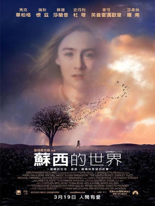 奧斯卡頒獎典禮一樣娛樂性十足,不管是主持人還是頒獎人的幽默跟其他頒獎典禮真的是精采太多了。加上今年有離異夫妻檔的作品互相競爭多了看好戲的感覺,四個多小時的頒獎典禮長是很長精采也不斷,可惜熟悉的老牌明星越來越少,這也證明江山代有人出。一片成名的大導演彼得傑克森因魔戒名留電影史,再來的金剛也就普普了,現在蘇西的世界又是一部改編自小說的故事,導演的三部電影挑戰三種不同的類型。有看過蘇西的世界原著的人大概都知道故事的結局,也知道這是一個有點奇幻感人的故事,有父親對女兒的思念,有女兒對家人的不捨,雖然女主角是個鬼魂但是一樣抱著天真來探索這世界,當觀眾看到她對愛情情竇初開時的天真心情一定會不捨,再加上父親對她忘不了的愛,還有謀殺的元素,這故事基本上很豐富,劇情上沒有大起伏,但還是可以引人入勝,演員也都很強,不過個人覺得還是小說好看。