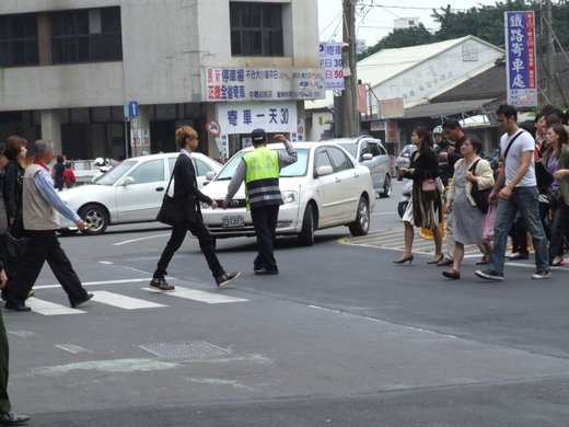 聯合報以頭條接連報導:〔陸以正痛罵車不讓人,新加坡媒體:台灣車不讓人〕,筆者在95年(2006)有一趟阿爾卑斯名峰之旅,其中奧地利導遊為來自台灣移民,開口閉口就是我們奧地利...〔顯然已經非常認同奧地利〕,言談間提及奧地利人的公德心是如何從小處扎根、確實從法治教育做起,比如:奧地利在駕駛人考試前的駕駛訓練課程中就特別著重禮讓行人的駕駛習慣要求〔人行道前30公尺,無論有無行人通過,強制汽車駕駛人一律煞車減速;這也是十幾年來筆者在歐陸各國旅行時看到的汽車駕駛人基本規矩。〕。 上段末「奧地利駕駛訓練....」筆者在「別煩惱政府管不管制人民」(成龍言論風波)中已有提及,『....台灣亂不亂呢?....新加坡則是透過重罰與嚴格執法來教育民眾。反觀寶島,就是沒有任何對策;亂,就讓他亂....走在寶島大街上,道路交通管理處罰條例還沒有列入「行人優先」條文以前,多數汽機車駕駛人,眼中根本沒有行人的存在,橫衝直撞之外還狂按喇叭如入無人之境;....「行人優先」條文公布以後,還是有為數不少的汽機車駕駛人,仍然是路上惡習不改,完全不把行人的人身安全當一回事,擺明了不讓路就倒楣的架式,讓不少行人為之氣結,在路上仍然忍氣吞聲,選擇自動禮讓汽機車先行!!寶島的交通,何止是亂呢?有時候簡直是亂七八糟、亂成一團....』〔詳:別煩惱政府管不管制人民〕 至於新加坡「海峽時報」報導中「...在搭手扶梯時,人們會讓路給趕時間的人,而不是狠狠地瞪你一眼;在捷運站,更沒有必要推擠,因為大家都排隊上車。...但是...在馬路上...,行人在過斑馬線時,車輛不會為了行人而停下來,轉彎時也同樣不會遲疑。...這些路上的小傢伙(摩托車騎士)應該會更小心,但他們沒有,騎車像在開碰碰車...」。其心中疑問其實很容易解答:因為捷運族與開車族是不同的兩種族群(僅有少數重疊),行為模式不同在於心態問題。在寶島向來是大欺小的文化,老兵訓菜鳥、大車欺壓小烏龜(大車一族口中的房車)、小車排擠機車,開車族鄙視無車族。除了在駕駛訓練課程中必須特別加強尊重行人的法治教育外〔目前的駕駛訓練課程只有駕駛技術養成,完全沒有駕駛基本禮儀與駕駛道德、法治教育等內容,交通規則只在背內容並未著重實質內涵〕,公權力加強執法更是必要的,尤其公車業者更要加強公車駕駛尊重行人路權〔行人可是公車業者最主要客戶群!〕與改善行駛中欺壓小車的惡習〔公車班表合理化也可改善公車搶時間衍生的惡劣行徑〕!! 或許因為地區習性不同,筆者在寶島多數城市都感受不到開車族群任何善意(僅極少數例外),但在新竹東門圓環由於沒有號誌,所以駕駛人相對比較會注意人行道上的行人。至於附圖則是中壢車站前,警方特別加強指揮車輛才做到讓駕駛人暫時尊重行人路權的畫面!各地協助交通指標的警方與義交們可得多加把勁,寶島車不讓人的惡習可是積弊已久,執政者必須下大決心才有可能慢慢扭轉,否則中華民國在台灣,會一直是先進國家人們眼中永遠底野蠻國度〔詳附註:車不讓人 老外拍窗 挨鐵棍追〕!!