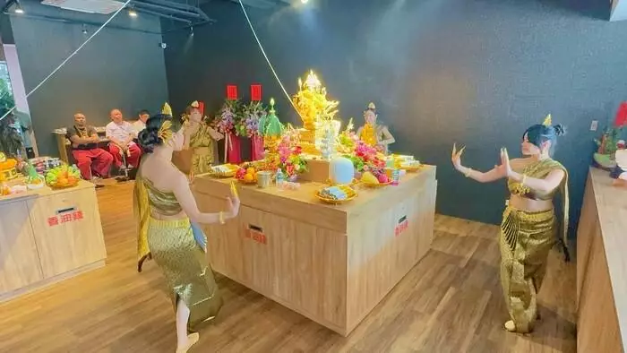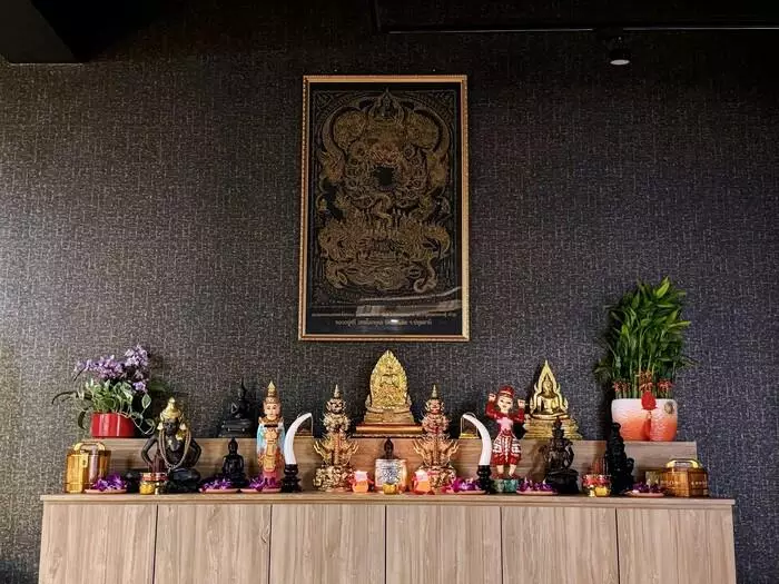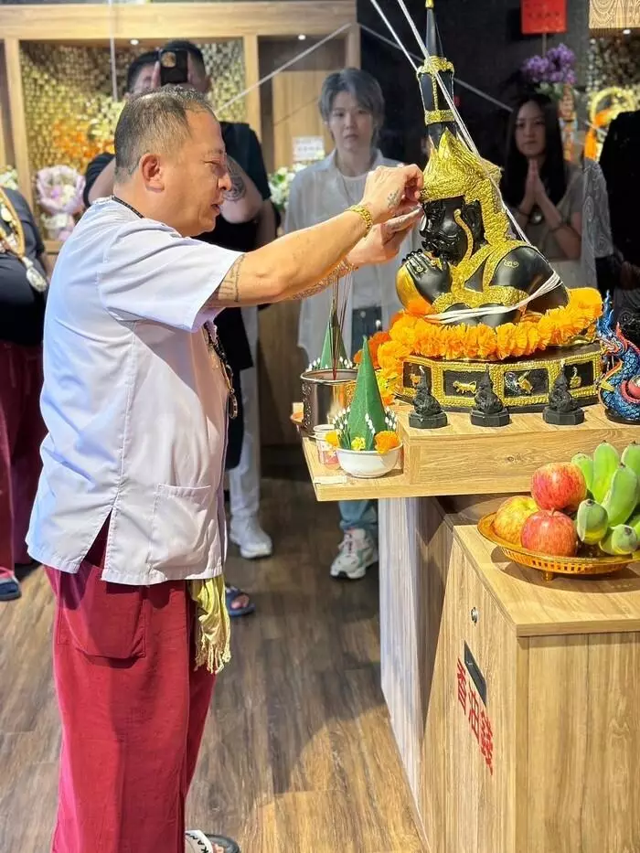 此外,泰佛閣內還設有狐仙堂,供奉知名的九尾狐仙,這尊狐仙是跟隨泰國知名師傅阿贊歐查多年,參加過多場重要的加持法會,具備強大的靈力,為信徒提供人緣與財運的加持。這尊狐仙特別受那些希望提升財運、人緣和愛情運勢的信徒所敬仰。