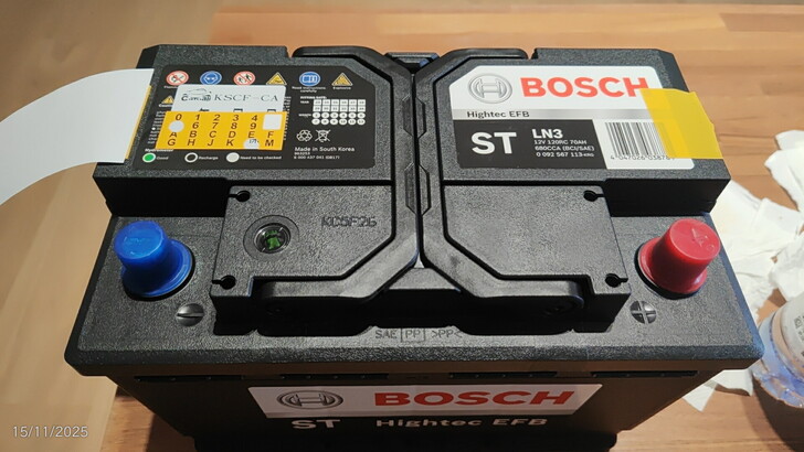 原電瓶已用三年,雙11預先買好電瓶,今天量測電瓶狀況不太理想,該動工換電瓶了... 跟上一顆一樣是韓國製,BOSCH LN3 70AH 680CCA,入手價3196,重18.6KG。這個賣家人也很好,出貨前有依我要求,挑一顆內阻很低的給我,上面標記5F26=推測是2025.06.26出廠。 更換前286CCA,更換後788CCA 更換前9.75mohm,更換後3.55mohm 一堆人放假消息說XX車要不斷電換電瓶,不然車電腦會怎樣,從來不相信,從上一部TOURAN到這一部,我都斷電換,裝回電瓶後,儀表板的ESP警示燈、煞車警示燈、電動方向盤指示燈會亮起,螢幕也會出現5個錯誤訊息,開個一百公尺,轉幾個彎,所有故障燈和錯誤訊息就會消失。 因為移除電瓶,TRIP1、TRIP2里程會歸零。 因為移除電瓶,時鐘需重新設定。 因為移除電瓶,四門電動窗可能需重新設定(我這次只有駕駛側要重設),恢復AUTO功能,請看車主手冊。 後記:舊電瓶重18.4公斤,賣回收場1KG17元。 |