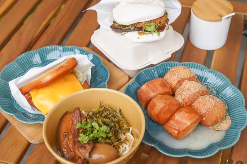 每一道餐點都是招牌,手工刈包與自製醬料,吃得出來的職人用心 「我們不走品項多路線,而是每道餐點都希望成為招牌。」店家強調,每道餐點都經過多次測試與調整,只為呈現穩定品質與特色口味。 店內最受歡迎的「梅干扣肉刈包」,是以台灣黑豬五花肉滷製,搭配客家酸菜與新鮮酵母發酵麵皮,烙印上品牌專屬Logo。這種看似簡單的台式小吃,卻藏著層層工序,在細節上展現職人精神。 也有旅客分享:「第一次吃覺得好吃,第二次回來是因為記得那個味道。」這不只是小吃,而是一份連結旅行記憶的味道。