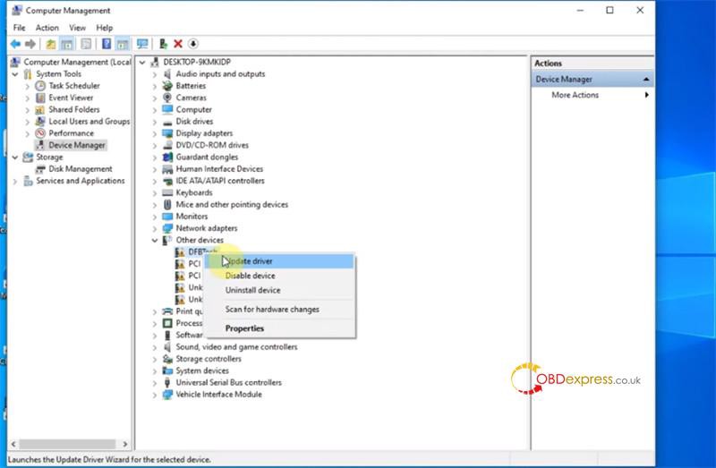 轉到設備管理器 >> 其他設備 >> DFBTech 設備 >> 更新驅動程序 瀏覽驅動位置 C:/Users/Administrator/Desktop /KTM200–22.804/DFBTech_Driver 文件夾 ![]()