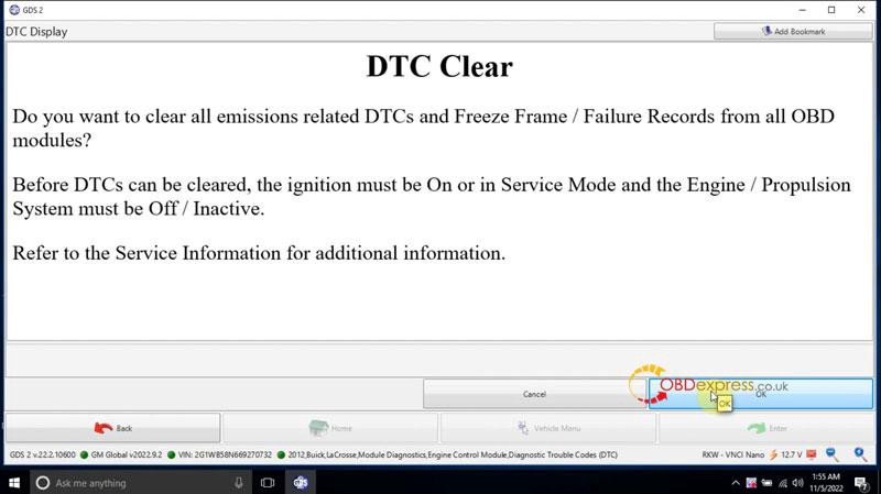 VNCI J2534 Nano + GM GDS2 讀取 2012 別克 DTC