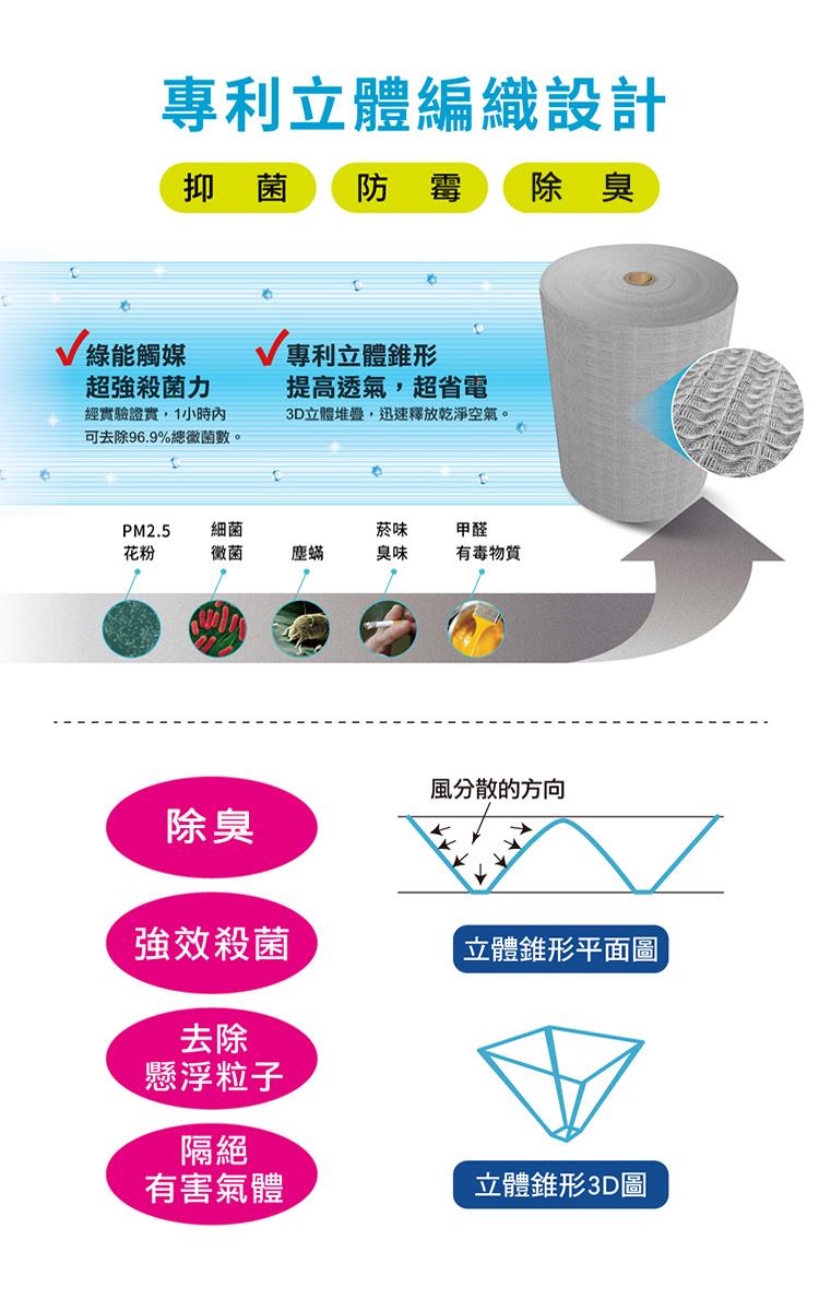 商品訊息功能: 商品訊息描述: ? ![]() ![]() ? ![]() ![]() ![]() ![]() ![]() ![]() ![]() ![]() ? 商品訊息簡述: 有效去除甲醛 TVOCS PM2 5 10 花粉 細菌 黴菌 塵? 退伍軍人菌 SO2等汙染源 商品名稱 OriginalLife中央空調清淨網10 300cm長效可水洗品牌 無類型 濾網適用坪數 25坪以下適 Original Life 中央空調清淨網 10*300cm 加強型 長效可水洗|冷氣保養 |