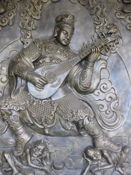 古代的印度、尼泊爾、西藏….把整個喜馬拉雅山稱之為「須彌山」,「須彌山」猶如佛教至高至美、至妙至善的聖山, 對修行人來說也是美好崇高的境界。須彌山高出水面八萬四千由旬, 其山直上,無所曲折,山中香木繁茂,四面四埵突出,山腰有四大天王之宮殿,山基有純金沙。夾道兩旁有七重寶牆,其間之門、牆、窗、欄、樹等,皆為金、銀、水晶、琉璃等所成。花果繁盛,香風四起,無數之奇鳥,相和而鳴。須彌山頂有三十三天宮,為帝釋天所居住之處。 而那三十三天在佛教宇宙觀中,位於欲界六天之第二天,此天之有情身長一由旬,衣重六銖,壽一千歲,食淨摶食,有男娶女嫁之事,乃藉身身相近而以氣成就陰陽,初生時,如人類六歲模樣,色圓滿,自有衣服。 三十三天並不是最究竟的,也不是最高的,正如同一般人常說的「天外有天」。原來, 在此天仍有情有愛, 雖然期求精神上的圓滿, 但仍然無法離開世間男女的情欲之愛, 一切眾生皆有佛性,但是在覺悟之前, 依然必須面對生命中的生、老、病、死,成、住、壞、空, 然後在輪轉中的層層波折與考驗中, 由須彌山底一階一階的爬上來。 須彌山腰有犍陀羅山,山有四頭有四王分居之,各率二十八部眾鎮守一方。其中, 東方持國天王管轄東勝神洲,祂住在須彌山東方的黃金埵,是主樂神,雖然身披戰甲,卻常流露慈顏微笑,剛柔並濟於其身, 性格慈愛, 以悲為懷, 手持碧玉琵琶, 表明要用音樂廣渡眾生並護持國土, 心不顛倒迷亂,心性圓通自在,是慈悲為懷、助世間有情眾生脫離苦海的佛法天王。 東方持國天王手上拿著琵琶,意指四大天王「風調雨順」中的調字, 調是協調, 一種身心和諧的境界, 代表處事之間不可操之過急,不能過也不能不及,像彈琴一樣,琴弦鬆了,彈不了,緊了就斷了, 不鬆不緊才能不求不棄。持國的國或許大到一個國家、一座城市, 但也可能只是一方心田, 一個小小的心城, 在緊密的心門中, 無從關照這個世界, 在高遠的心願中, 卻又虛無飄渺不切實際, 若要談慈悲為懷, 利益眾生, 又怎能不從自己的寸心做起。 一年半以來, 傑克已在城邦發表了三十二首創作歌曲, 這第三十三首歌「喜蘊樂心」, 但求清心靜心開始, 喜蘊心中遇得一方心田之領悟, 願在弦歌輕啟中, 喚得人生甘苦之體會, 祈願祝福身在困頓苦痛中的黎民, 並與世間有情眾生共享於這苦樂紛陳的婆娑世界。
