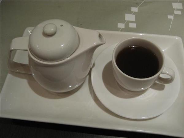 ﹝紅豆抹茶奶酪﹞ 最後,飲料為薑汁桂圓茶和黃金香柚茶,托盤備純白茶壺和茶杯,薑汁桂圓茶味道濃重,黃金香柚茶則相對的平淡無味,原來茶包之外的香柚醬沉澱壺底,得先用小湯匙攪拌才行,後經服務生說明,加注開水,重新攪拌均勻,果然散發柚香與茶香,反而覺得比薑汁桂圓茶好喝。