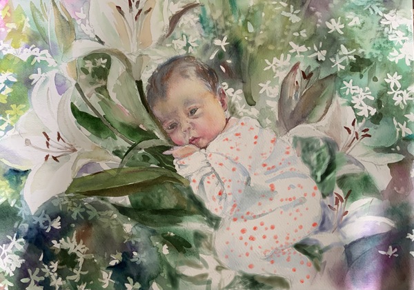 我為莉莉作這畫,收藏的不只是一個初生的瞬間,而是一個家族對生命最深、最柔軟的愛。