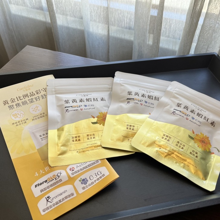 因為工作與生活習慣,我算是3C重度使用者。 (是說現在有誰不是3C人?) 長時間上班盯著電腦,下班後寫稿、撰文、做影片, 休閒時間還要追劇、滑手機, 一不小心,使用3C的時數就超時了。 久而久之,就會感覺聚焦變得不夠專注,整個人看起來也比較疲憊、無神。 適時補充一些晶亮保護,是非常重要的。 卡蘿琳葉黃素蝦紅素,它的配方很完整, 也有營養師和許多網友分享過心得,馬上來開箱介紹。 卡蘿琳葉黃素蝦紅素 開箱