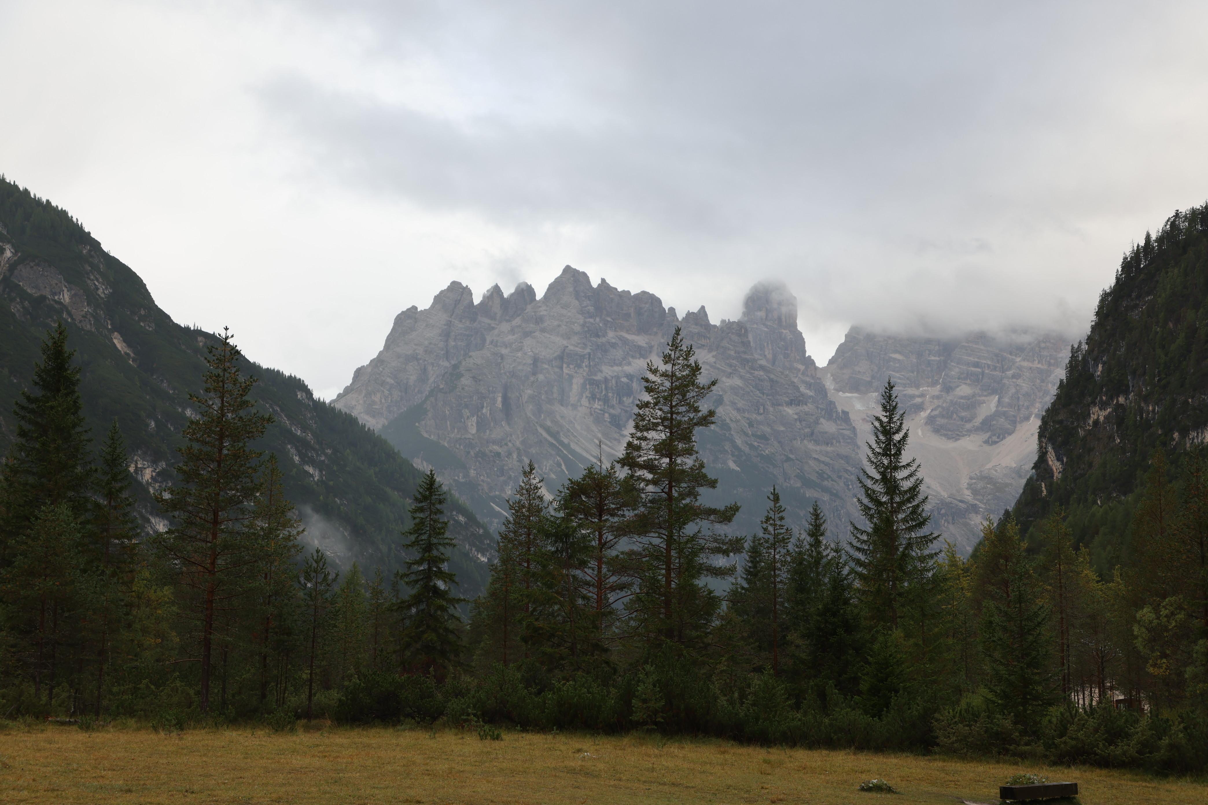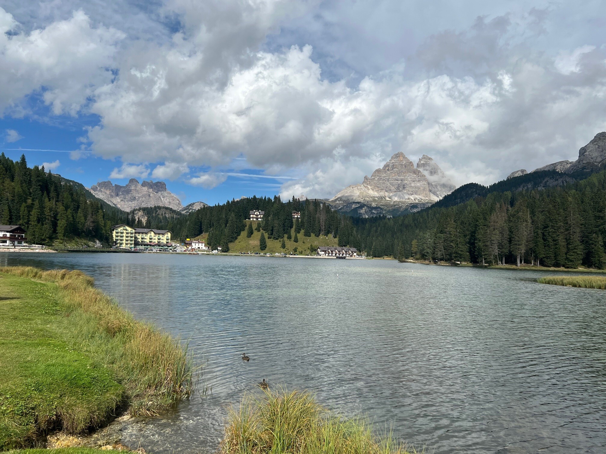 多洛米堤之美-密蘇里納湖與三峰山·調寄踏莎行 玉鏡浮空,瓊琚碎浪, 嶙峋劍戟劈雲嶂, 嵯峨陡峭欲擎天,波光瀲灧金黃釀。 霧縞徐移,雲綃漫蕩, 丹丘隱現蓬萊上, 風拂碧水洗塵襟,歸來盈袖松青香。 密蘇里納湖(Lago di Misurina)在東多洛米堤的高山湖泊,海拔1854公尺,週長約2.6公里,湖不深,只五公尺左右,被暱稱為多洛米堤明珠。湖背倚多洛米堤最著名的山峰—三峰山,前眺索拉皮斯山(Sorapiss)群峰,清晨和黃昏,景色各異,波平如鏡時,湖水映照群峰,景色特別迷人,可惜我們去時,有點微風,湖面因風起皺,波光瀲灧,又有不同風情。由於密蘇里納湖四週的空氣特別清新,湖的南岸旁設有義大利唯一的兒童氣喘治療中心,該處的建築原是二戰前的豪華飯店—密蘇里納大飯店(Grand Hotel Misurina)所改成。