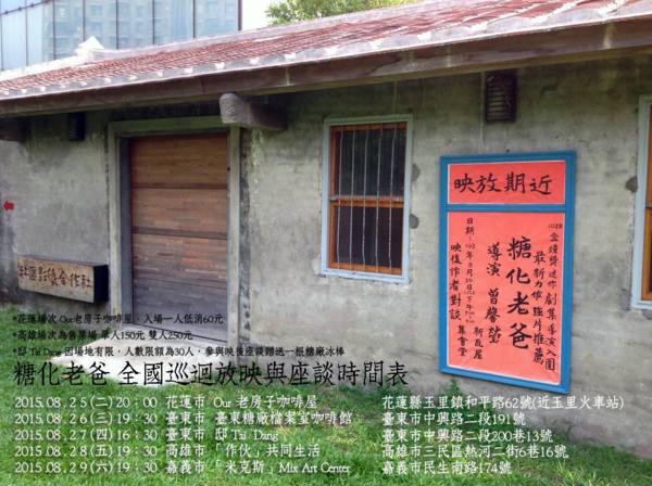 正當我們積極修繕老屋與推廣募款計畫的同時,八月二十九日星期六晚上七點半,我們將在整修中的米克斯老屋,舉辦「糖化老爸」電影放映與映後座談。 「糖化老爸」是一部關於如何與罹患長期慢性病家人相處的電影。