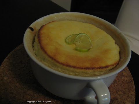 舒馥蕾是經典的法式烘焙品, 口味多變鹹甜都有. 鹹的包括龍蝦, 起士, 菠菜, 雞肉等. 甜的例如, 巧克力, 橘子, 椰子. 甚至甜鹹交錯, 像是丹麥藍起士佐無花果蜂蜜醬. 今天介紹的Key萊姆口味靈感來自美國佛羅里達Key West 的Key萊姆派. Key 萊姆和一般的萊姆不同: Key萊姆大約比乒乓球小一點. 萊姆約檸檬大小, 味道介於Key萊姆和檸檬之間. 食譜來源: Isabel 準備時間: 45分鐘 烘焙時間: 14 分鐘 四人份 一人份約8盎司(240 ml 或 一杯) 材料: 1∕4 杯糖, 及約l~2大匙作烤杯防黏用 一大匙融化奶油, 作烤杯防黏用 1/3 杯中筋麵粉 l 杯低脂牛奶(2%脂肪) 4個大顆室溫的蛋, 蛋白蛋黃分開至2個大碗 一小匙塔塔粉(cream of tartar) 1∕4 小匙鹽 5個Key萊姆的皮屑(約2大匙) 4個Key萊姆的汁(約3大匙) 3大匙糖粉 作法: 烤箱預熱至425 度 F (約220度 C) 1. 每一烤杯內完全塗一層薄薄的融化奶油,接著毎一烤杯內均勻塔灑上一層糖.把所有烤杯放入冰箱備用.(此一步驟是為防止烘烤過程麵糊沾黏烤杯的內邊而無法膨脹.) 2. 冷的牛奶倒入鍋中. 麵粉加入冷的牛奶攪拌均勻. 中火加熱, 不時攪拌, 至濃綢(像美乃滋濃度), 息火. 3. 準備2的同時, 將1∕4杯糖加入蛋黃, 打至淡黃色. 4. 將2分3次加入3. 每一次加的時候攪拌均勻再加下一部份. 5. 4 用保鮮模蓋上(模要接觸麵糊:如此可防麵糊表面結一層皮.) 放涼至室溫左右. (在等4冷卻的同時, 操作 6 和 7.) 6. 將糖粉, 萊姆皮屑和汁攪勻. 備用. 7. 塔塔粉和鹽加入蛋白. 蛋白打至硬性發泡. 8. 6 加入5 攪勻. 9. 7 用橡皮刮刀分三次輕輕拌入 8 至完全拌勻. 10. 將 9 等分用大湯杓舀入 4 個 8 盎司烤杯或6 個 6盎司烤杯. 11. 烤杯送入烤箱烤約 14 分鐘. 或是烤杯用保鮮膜蓋好放冰箱放最多一天再同溫度/時間烤 (效果比較差).烤好後馬上上桌(幾分鐘後會開始塌陷). *也可用6盎司(180 ml) 的烤杯, 則一人份 約 5.5 盎司(180 ml), 共六人份. *一杯240 ml, 一大匙 15 ml, 一小匙 5 ml. *蛋白蛋黃分開時須小心: 蛋白不可參有任何蛋黃, 不然蛋白會打不發. *塔塔粉(cream of tartar) 為一種天然酸性鹽, 是釀酒過程中的副產品. 塔塔粉和鹽幫助蛋白打發, 並幫助蛋白泡沫在烤過程充滿熱空氣澎脹之後穩定結構, 如此烤好的舒馥蕾出了烤箱才不至於因泡沫中的熱氣流失而太快塌陷. 甜點加少許鹽並可使甜點的甜味更提升.