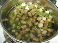 材料: 2杯法式蘑菇高湯 2盎司棕色麵粉糊(roux),或1湯匙玉米或太白粉和1湯匙冷水混合,作增稠劑